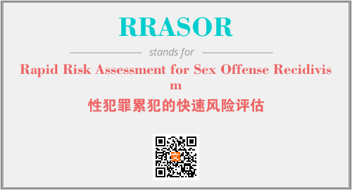 上述内容是“Rapid Risk Assessment for Sex Offense Recidivism”作为“RRASOR”的缩写,解释为“性犯罪累犯的快速风险评估”时的信息,以及英文缩略词RRASOR所代表的英文单词,其对应的中文拼音、详细解释以及在英文中的流行度和相关分类、应用领域及应用示例等。