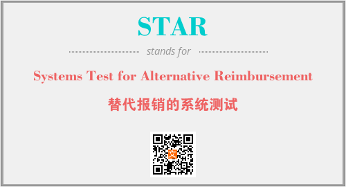 上述内容是“Systems Test for Alternative Reimbursement”作为“STAR”的缩写,解释为“替代报销的系统测试”时的信息,以及英文缩略词STAR所代表的英文单词,其对应的中文拼音、详细解释以及在英文中的流行度和相关分类、应用领域及应用示例等。