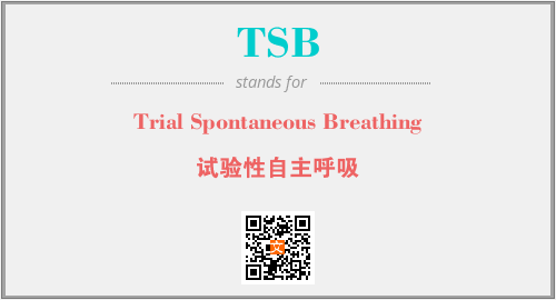 英文缩略词“TSB”经常作为“Trial Spontaneous Breathing”的英文缩写来使用,中文表示:“试验性自主呼吸”。本文将详细介绍英文缩写词TSB所代表英文单词,其对应的中文拼音、详细解释以及在英语中的流行度。此外,还有关于缩略词TSB的分类、应用领域及相关应用示例等。