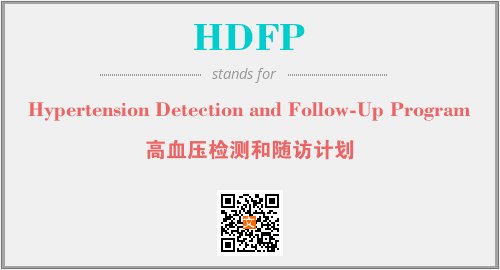 英文缩略词“HDFP”经常作为“Hypertension Detection and Follow-Up Program”的英文缩写来使用,中文表示:“高血压检测和随访计划”。本文将详细介绍英文缩写词HDFP所代表英文单词,其对应的中文拼音、详细解释以及在英语中的流行度。此外,还有关于缩略词HDFP的分类、应用领域及相关应用示例等。