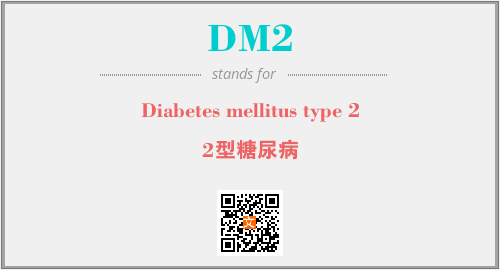 上述内容是“Diabetes mellitus type 2”作为“DM2”的缩写,解释为“2型糖尿病”时的信息,以及英文缩略词DM2所代表的英文单词,其对应的中文拼音、详细解释以及在英文中的流行度和相关分类、应用领域及应用示例等。