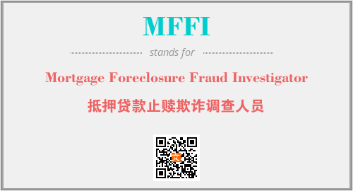 英文缩略词“MFFI”经常作为“Mortgage Foreclosure Fraud Investigator”的英文缩写来使用,中文表示:“抵押贷款止赎欺诈调查人员”。本文将详细介绍英文缩写词MFFI所代表英文单词,其对应的中文拼音、详细解释以及在英语中的流行度。此外,还有关于缩略词MFFI的分类、应用领域及相关应用示例等。