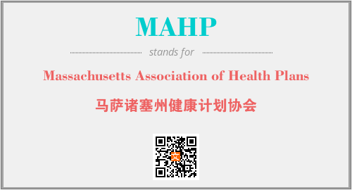 上述内容是“Massachusetts Association of Health Plans”作为“MAHP”的缩写,解释为“马萨诸塞州健康计划协会”时的信息,以及英文缩略词MAHP所代表的英文单词,其对应的中文拼音、详细解释以及在英文中的流行度和相关分类、应用领域及应用示例等。