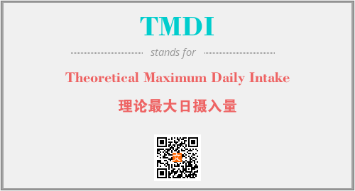 英文缩略词“TMDI”经常作为“Theoretical Maximum Daily Intake”的英文缩写来使用,中文表示:“理论最大日摄入量”。本文将详细介绍英文缩写词TMDI所代表英文单词,其对应的中文拼音、详细解释以及在英语中的流行度。此外,还有关于缩略词TMDI的分类、应用领域及相关应用示例等。