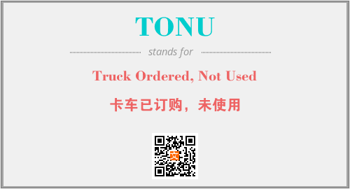 上述内容是“Truck Ordered, Not Used”作为“TONU”的缩写,解释为“卡车已订购,未使用”时的信息,以及英文缩略词TONU所代表的英文单词,其对应的中文拼音、详细解释以及在英文中的流行度和相关分类、应用领域及应用示例等。