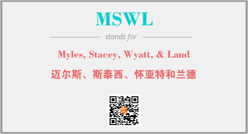 以上为Myles, Stacey, Wyatt, & Land英文缩略词MSWL的中文解释,以及该英文缩写在英语的流行度、分类和应用领域方面的信息。
