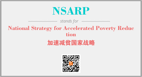 上述内容是“National Strategy for Accelerated Poverty Reduction”作为“NSARP”的缩写,解释为“加速减贫国家战略”时的信息,以及英文缩略词NSARP所代表的英文单词,其对应的中文拼音、详细解释以及在英文中的流行度和相关分类、应用领域及应用示例等。