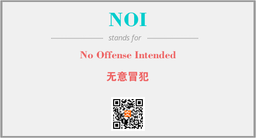 上述内容是“No Offense Intended”作为“NOI”的缩写,解释为“无意冒犯”时的信息,以及英文缩略词NOI所代表的英文单词,其对应的中文拼音、详细解释以及在英文中的流行度和相关分类、应用领域及应用示例等。