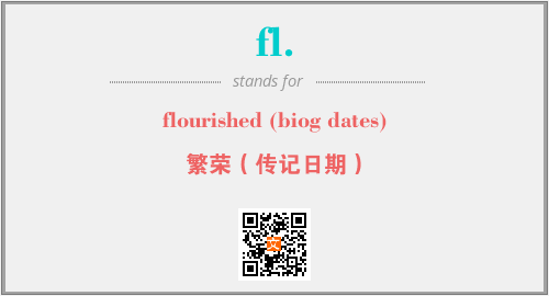 上述内容是“flourished (biog dates)”作为“fl.”的缩写,解释为“繁荣(传记日期)”时的信息,以及英文缩略词fl.所代表的英文单词,其对应的中文拼音、详细解释以及在英文中的流行度和相关分类、应用领域及应用示例等。