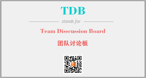 英文缩略词“TDB”经常作为“Team Disscussion Board”的英文缩写来使用,中文表示:“团队讨论板”。本文将详细介绍英文缩写词TDB所代表英文单词,其对应的中文拼音、详细解释以及在英语中的流行度。此外,还有关于缩略词TDB的分类、应用领域及相关应用示例等。