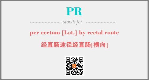 英文缩略词“PR”经常作为“per rectum [Lat.] by rectal route”的英文缩写来使用,中文表示:“经直肠途径经直肠[横向]”。本文将详细介绍英文缩写词PR所代表英文单词,其对应的中文拼音、详细解释以及在英语中的流行度。此外,还有关于缩略词PR的分类、应用领域及相关应用示例等。