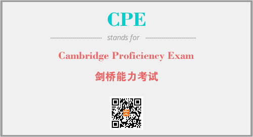 英文缩略词“CPE”经常作为“Cambridge Proficiency Exam”的英文缩写来使用,中文表示:“剑桥能力考试”。本文将详细介绍英文缩写词CPE所代表英文单词,其对应的中文拼音、详细解释以及在英语中的流行度。此外,还有关于缩略词CPE的分类、应用领域及相关应用示例等。