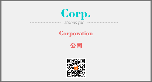 英文缩略词“Corp.”经常作为“Corporation”的英文缩写来使用,中文表示:“公司”。本文将详细介绍英文缩写词Corp.所代表英文单词,其对应的中文拼音、详细解释以及在英语中的流行度。此外,还有关于缩略词Corp.的分类、应用领域及相关应用示例等。