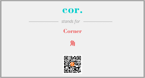 上述内容是“Corner”作为“cor.”的缩写,解释为“角”时的信息,以及英文缩略词cor.所代表的英文单词,其对应的中文拼音、详细解释以及在英文中的流行度和相关分类、应用领域及应用示例等。