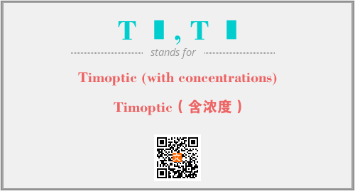 英文缩略词“T ½, T ¼”经常作为“Timoptic (with concentrations)”的英文缩写来使用,中文表示:“Timoptic(含浓度)”。本文将详细介绍英文缩写词T ½, T ¼所代表英文单词,其对应的中文拼音、详细解释以及在英语中的流行度。此外,还有关于缩略词T ½, T ¼的分类、应用领域及相关应用示例等。