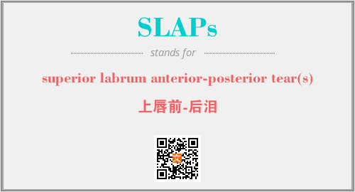 英文缩略词“SLAPs”经常作为“superior labrum anterior-posterior tear(s)”的英文缩写来使用,中文表示:“上唇前-后泪”。本文将详细介绍英文缩写词SLAPs所代表英文单词,其对应的中文拼音、详细解释以及在英语中的流行度。此外,还有关于缩略词SLAPs的分类、应用领域及相关应用示例等。