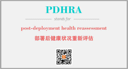 上述内容是“post-deployment health reassessment”作为“PDHRA”的缩写,解释为“部署后健康状况重新评估”时的信息,以及英文缩略词PDHRA所代表的英文单词,其对应的中文拼音、详细解释以及在英文中的流行度和相关分类、应用领域及应用示例等。