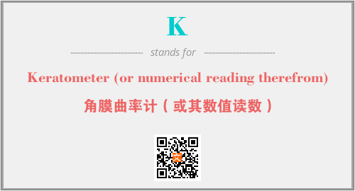 英文缩略词“K”经常作为“Keratometer (or numerical reading therefrom)”的英文缩写来使用,中文表示:“角膜曲率计(或其数值读数)”。本文将详细介绍英文缩写词K所代表英文单词,其对应的中文拼音、详细解释以及在英语中的流行度。此外,还有关于缩略词K的分类、应用领域及相关应用示例等。