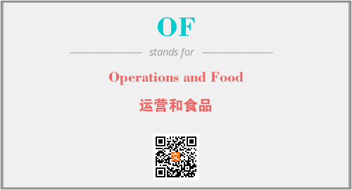 上述内容是“Operations and Food”作为“OF”的缩写,解释为“运营和食品”时的信息,以及英文缩略词OF所代表的英文单词,其对应的中文拼音、详细解释以及在英文中的流行度和相关分类、应用领域及应用示例等。