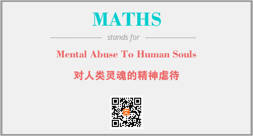 英文缩略词“MATHS”经常作为“Mental Abuse To Human Souls”的英文缩写来使用,中文表示:“对人类灵魂的精神虐待”。本文将详细介绍英文缩写词MATHS所代表英文单词,其对应的中文拼音、详细解释以及在英语中的流行度。此外,还有关于缩略词MATHS的分类、应用领域及相关应用示例等。