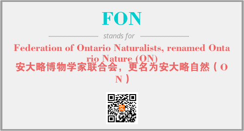 以上为Federation of Ontario Naturalists, renamed Ontario Nature (ON)英文缩略词FON的中文解释,以及该英文缩写在英语的流行度、分类和应用领域方面的信息。