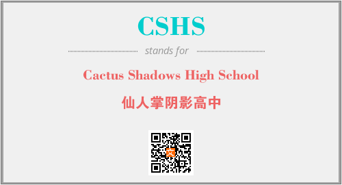 英文缩略词“CSHS”经常作为“Cactus Shadows High School”的英文缩写来使用,中文表示:“仙人掌阴影高中”。本文将详细介绍英文缩写词CSHS所代表英文单词,其对应的中文拼音、详细解释以及在英语中的流行度。此外,还有关于缩略词CSHS的分类、应用领域及相关应用示例等。