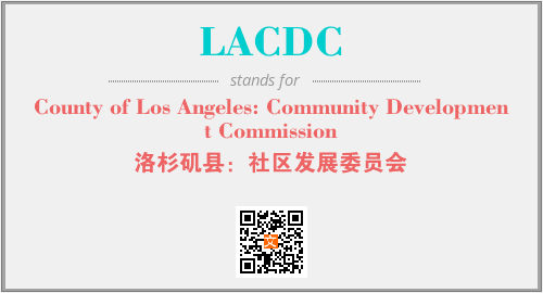 上述内容是“County of Los Angeles: Community Development Commission”作为“LACDC”的缩写,解释为“洛杉矶县:社区发展委员会”时的信息,以及英文缩略词LACDC所代表的英文单词,其对应的中文拼音、详细解释以及在英文中的流行度和相关分类、应用领域及应用示例等。
