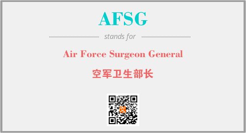 上述内容是“Air Force Surgeon General”作为“AFSG”的缩写,解释为“空军卫生部长”时的信息,以及英文缩略词AFSG所代表的英文单词,其对应的中文拼音、详细解释以及在英文中的流行度和相关分类、应用领域及应用示例等。