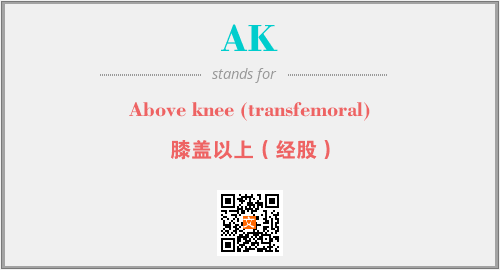 英文缩略词“AK”经常作为“Above knee (transfemoral)”的英文缩写来使用,中文表示:“膝盖以上(经股)”。本文将详细介绍英文缩写词AK所代表英文单词,其对应的中文拼音、详细解释以及在英语中的流行度。此外,还有关于缩略词AK的分类、应用领域及相关应用示例等。