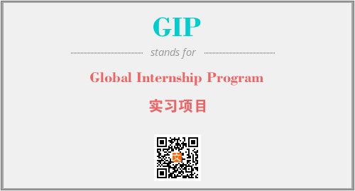 以上为Global Internship Program英文缩略词GIP的中文解释,以及该英文缩写在英语的流行度、分类和应用领域方面的信息。