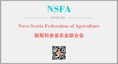 上述内容是“Nova Scotia Federation of Agriculture”作为“NSFA”的缩写,解释为“新斯科舍省农业联合会”时的信息,以及英文缩略词NSFA所代表的英文单词,其对应的中文拼音、详细解释以及在英文中的流行度和相关分类、应用领域及应用示例等。