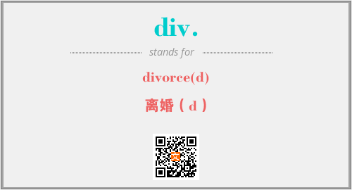 英文缩略词“div.”经常作为“divorce(d)”的英文缩写来使用,中文表示:“离婚(d)”。本文将详细介绍英文缩写词div.所代表英文单词,其对应的中文拼音、详细解释以及在英语中的流行度。此外,还有关于缩略词div.的分类、应用领域及相关应用示例等。