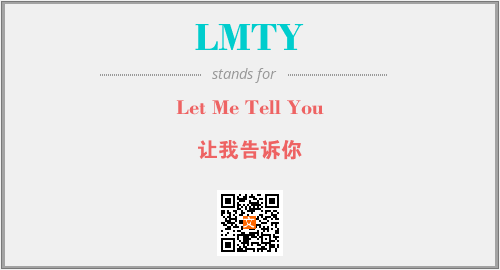 英文缩略词“LMTY”经常作为“Let Me Tell You”的英文缩写来使用,中文表示:“让我告诉你”。本文将详细介绍英文缩写词LMTY所代表英文单词,其对应的中文拼音、详细解释以及在英语中的流行度。此外,还有关于缩略词LMTY的分类、应用领域及相关应用示例等。