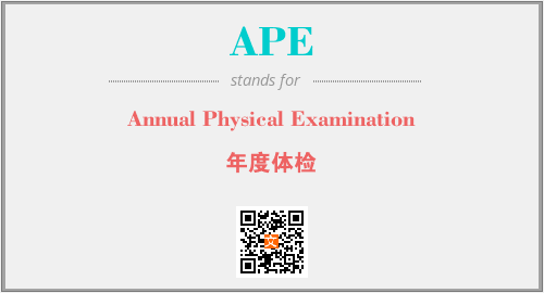 上述内容是“Annual Physical Examination”作为“APE”的缩写,解释为“年度体检”时的信息,以及英文缩略词APE所代表的英文单词,其对应的中文拼音、详细解释以及在英文中的流行度和相关分类、应用领域及应用示例等。