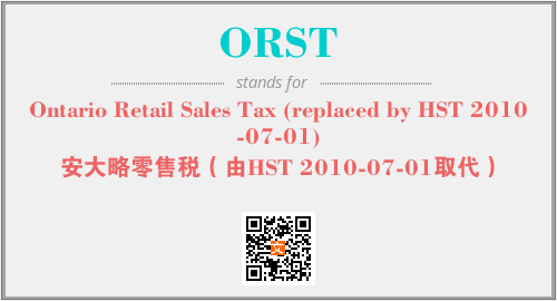 上述内容是“Ontario Retail Sales Tax (replaced by HST 2010-07-01)”作为“ORST”的缩写,解释为“安大略零售税(由HST 2010-07-01取代)”时的信息,以及英文缩略词ORST所代表的英文单词,其对应的中文拼音、详细解释以及在英文中的流行度和相关分类、应用领域及应用示例等。