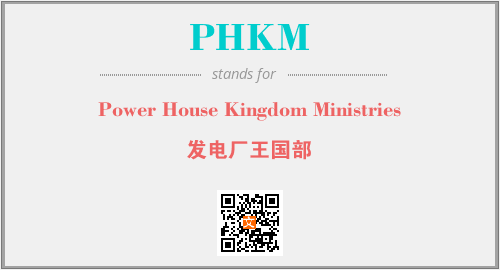 英文缩略词“PHKM”经常作为“Power House Kingdom Ministries”的英文缩写来使用,中文表示:“发电厂王国部”。本文将详细介绍英文缩写词PHKM所代表英文单词,其对应的中文拼音、详细解释以及在英语中的流行度。此外,还有关于缩略词PHKM的分类、应用领域及相关应用示例等。