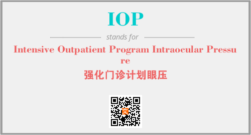 英文缩略词“IOP”经常作为“Intensive Outpatient Program Intraocular Pressure”的英文缩写来使用,中文表示:“强化门诊计划眼压”。本文将详细介绍英文缩写词IOP所代表英文单词,其对应的中文拼音、详细解释以及在英语中的流行度。此外,还有关于缩略词IOP的分类、应用领域及相关应用示例等。