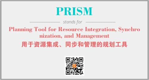 以上为Planning Tool for Resource Integration, Synchronization, and Management英文缩略词PRISM的中文解释,以及该英文缩写在英语的流行度、分类和应用领域方面的信息。