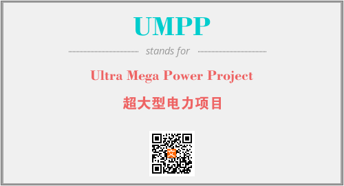 英文缩略词“UMPP”经常作为“Ultra Mega Power Project”的英文缩写来使用,中文表示:“超大型电力项目”。本文将详细介绍英文缩写词UMPP所代表英文单词,其对应的中文拼音、详细解释以及在英语中的流行度。此外,还有关于缩略词UMPP的分类、应用领域及相关应用示例等。