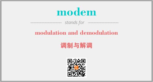 英文缩略词“modem”经常作为“modulation and demodulation”的英文缩写来使用,中文表示:“调制与解调”。本文将详细介绍英文缩写词modem所代表英文单词,其对应的中文拼音、详细解释以及在英语中的流行度。此外,还有关于缩略词modem的分类、应用领域及相关应用示例等。