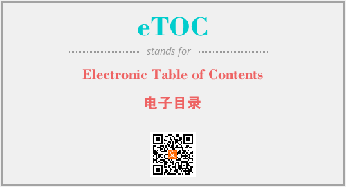 上述内容是“Electronic Table of Contents”作为“eTOC”的缩写,解释为“电子目录”时的信息,以及英文缩略词eTOC所代表的英文单词,其对应的中文拼音、详细解释以及在英文中的流行度和相关分类、应用领域及应用示例等。