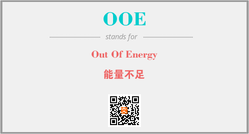 上述内容是“Out Of Energy”作为“OOE”的缩写,解释为“能量不足”时的信息,以及英文缩略词OOE所代表的英文单词,其对应的中文拼音、详细解释以及在英文中的流行度和相关分类、应用领域及应用示例等。