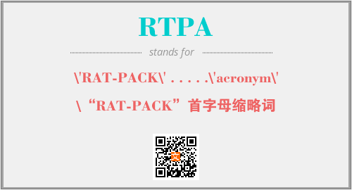 上述内容是“\'RAT-PACK\' . . . . .\'acronym\'”作为“RTPA”的缩写,解释为“\“RAT-PACK”首字母缩略词”时的信息,以及英文缩略词RTPA所代表的英文单词,其对应的中文拼音、详细解释以及在英文中的流行度和相关分类、应用领域及应用示例等。