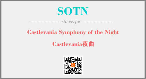 英文缩略词“SOTN”经常作为“Castlevania Symphony of the Night”的英文缩写来使用,中文表示:“Castlevania夜曲”。本文将详细介绍英文缩写词SOTN所代表英文单词,其对应的中文拼音、详细解释以及在英语中的流行度。此外,还有关于缩略词SOTN的分类、应用领域及相关应用示例等。