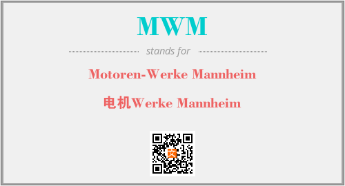 上述内容是“Motoren-Werke Mannheim”作为“MWM”的缩写,解释为“电机Werke Mannheim”时的信息,以及英文缩略词MWM所代表的英文单词,其对应的中文拼音、详细解释以及在英文中的流行度和相关分类、应用领域及应用示例等。
