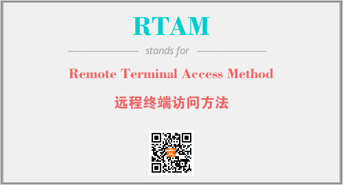 上述内容是“Remote Terminal Access Method”作为“RTAM”的缩写,解释为“远程终端访问方法”时的信息,以及英文缩略词RTAM所代表的英文单词,其对应的中文拼音、详细解释以及在英文中的流行度和相关分类、应用领域及应用示例等。