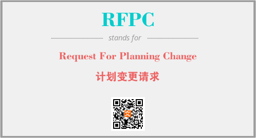 英文缩略词“RFPC”经常作为“Request For Planning Change”的英文缩写来使用,中文表示:“计划变更请求”。本文将详细介绍英文缩写词RFPC所代表英文单词,其对应的中文拼音、详细解释以及在英语中的流行度。此外,还有关于缩略词RFPC的分类、应用领域及相关应用示例等。