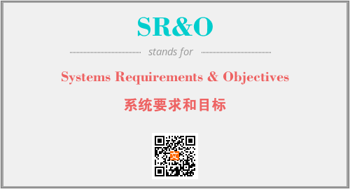 上述内容是“Systems Requirements & Objectives”作为“SR&O”的缩写,解释为“系统要求和目标”时的信息,以及英文缩略词SR&O所代表的英文单词,其对应的中文拼音、详细解释以及在英文中的流行度和相关分类、应用领域及应用示例等。