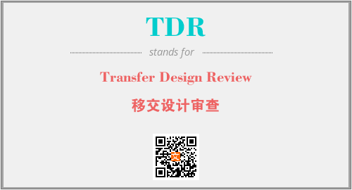 英文缩略词“TDR”经常作为“Transfer Design Review”的英文缩写来使用,中文表示:“移交设计审查”。本文将详细介绍英文缩写词TDR所代表英文单词,其对应的中文拼音、详细解释以及在英语中的流行度。此外,还有关于缩略词TDR的分类、应用领域及相关应用示例等。