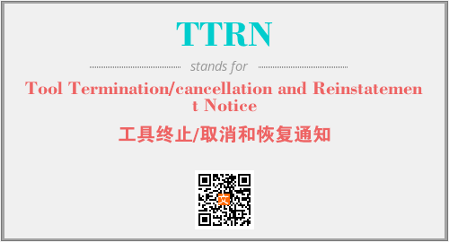 英文缩略词“TTRN”经常作为“Tool Termination/cancellation and Reinstatement Notice”的英文缩写来使用,中文表示:“工具终止/取消和恢复通知”。本文将详细介绍英文缩写词TTRN所代表英文单词,其对应的中文拼音、详细解释以及在英语中的流行度。此外,还有关于缩略词TTRN的分类、应用领域及相关应用示例等。